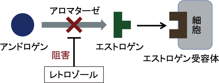 また、エストロゲンの生成に必要なアロマターゼを阻害することにより内服中は体内のエストロゲン量が低下するため、乳癌などの