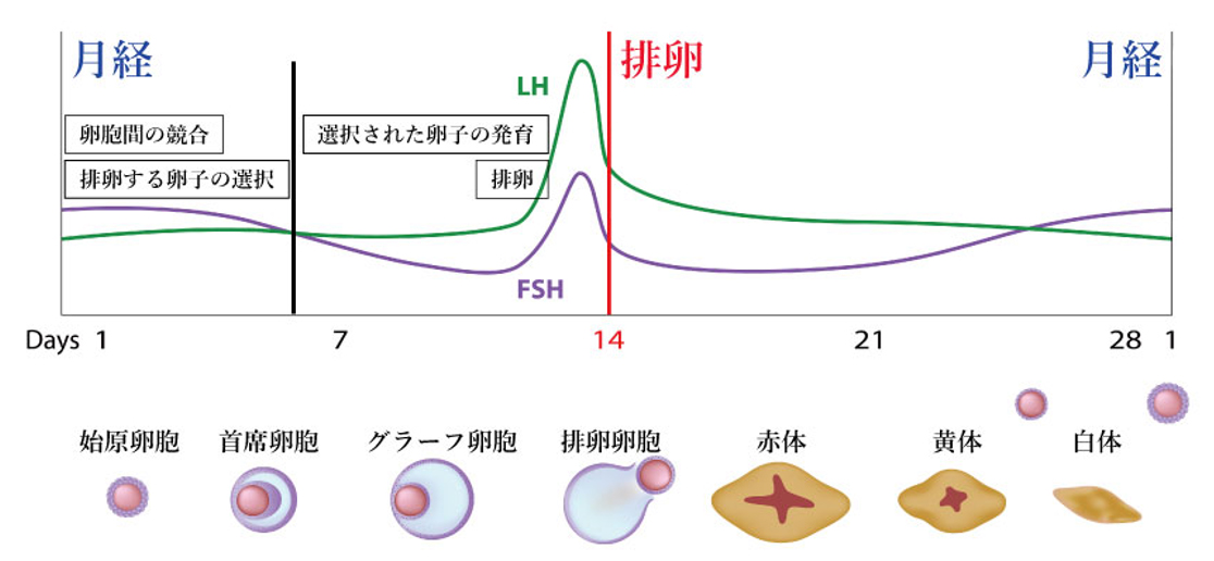 一般的に、FSHは排卵から10~14日目ほど経って血中濃度がLHよりも高くなります。